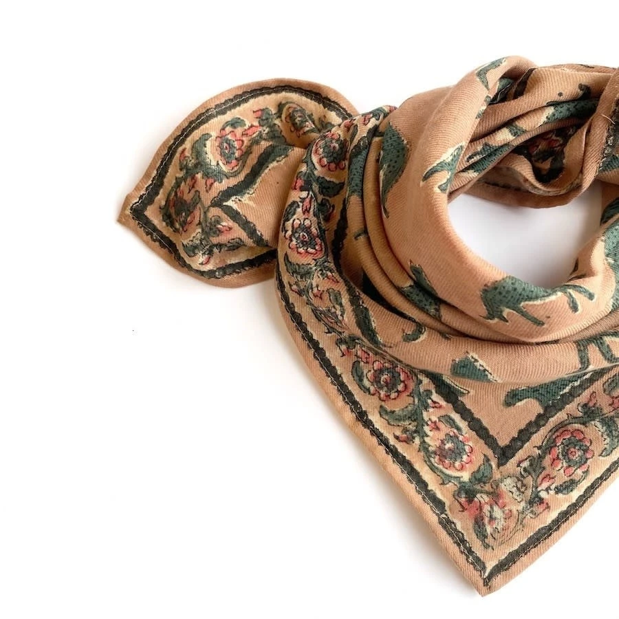 - Conseil d’entretien : En raison du procédé de teinture naturelle utilisé, les foulards peuvent déteindre par frottements sur d’autres matières. Nous vous recommandons de les laver à 30° programme délicat seuls ou avec des coloris similaires avant de les porter pour la première fois.