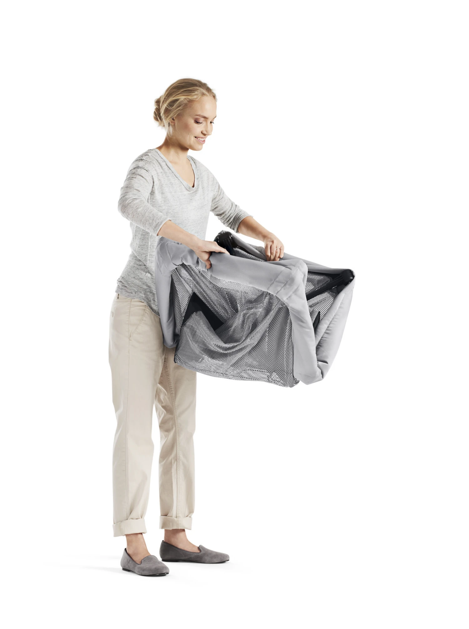 Doté d’un vrai matelas posé au sol, le Lit de Voyage Light de Babybjörn offre un lit d’appoint (et pourquoi pas même un parc !) stable et tout confort.