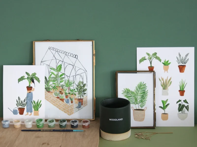 - Kit DIY (Do it Yourself) complet pour réaliser 4 illustrations de plantes délicates grâce à la technique de peinture au numéro