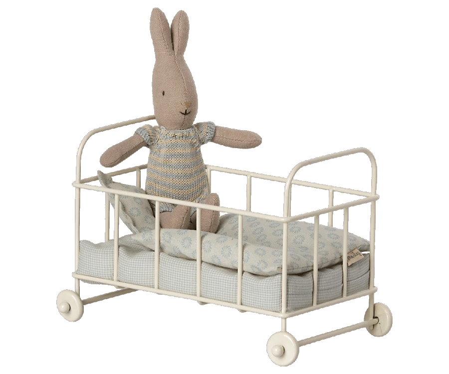 MAILEG LIT À BARREAUX EN MÉTAL 10CM BLEU – POUR BÉBÉ & PETITE SOURIS