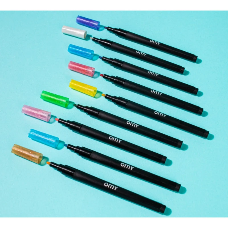 OMY BOITE DE 9 FEUTRES DOUBLE POINTE PAILLETTES