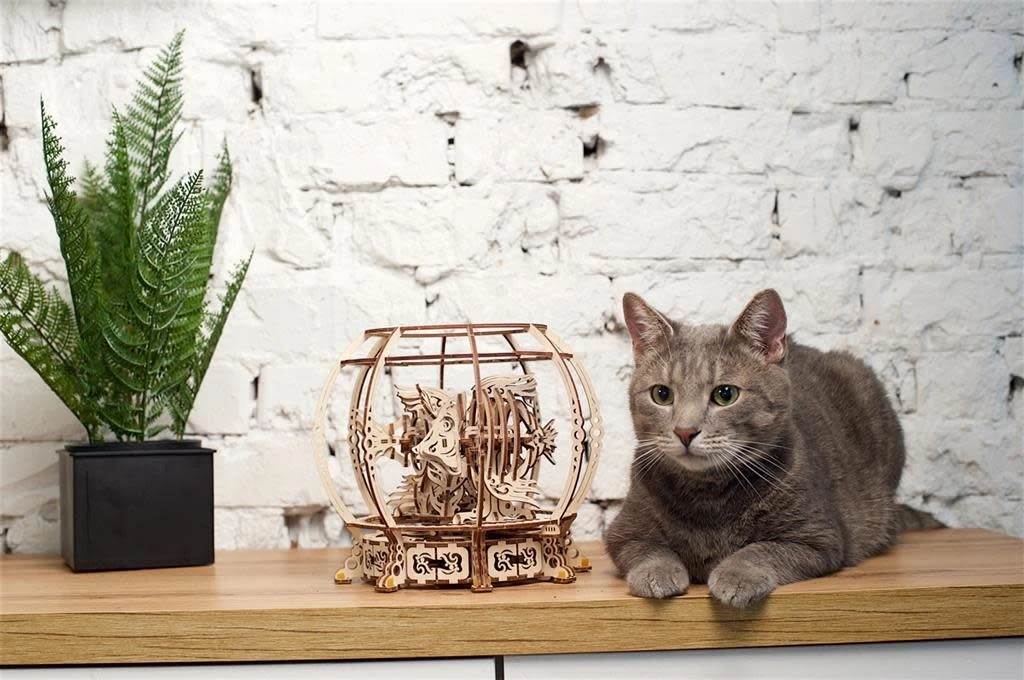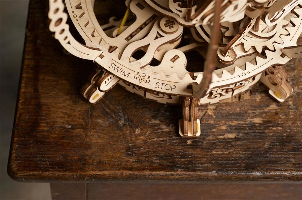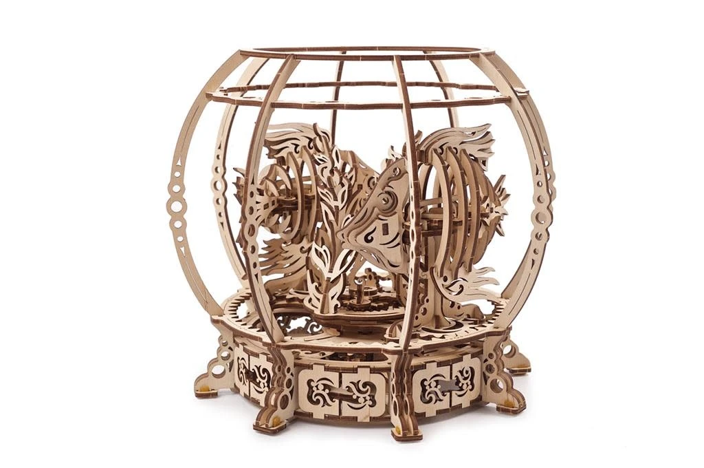 - Mouvement : Les poissons tournent autour du bocal en bougeant leur tête et leur nageoire tout en laissant découvrir leur système d’engrenage