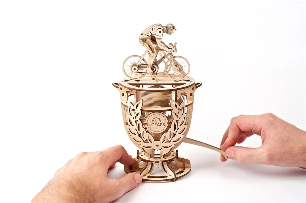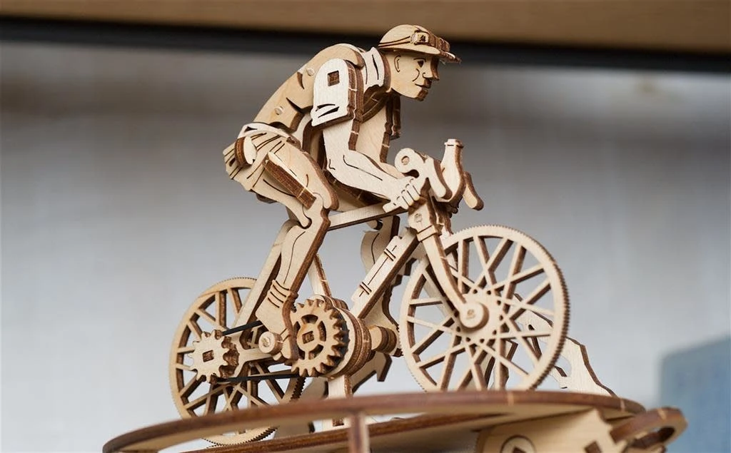 - Mouvement : Le cycliste pédale et laisse découvrir le mouvement de ses engrenages
